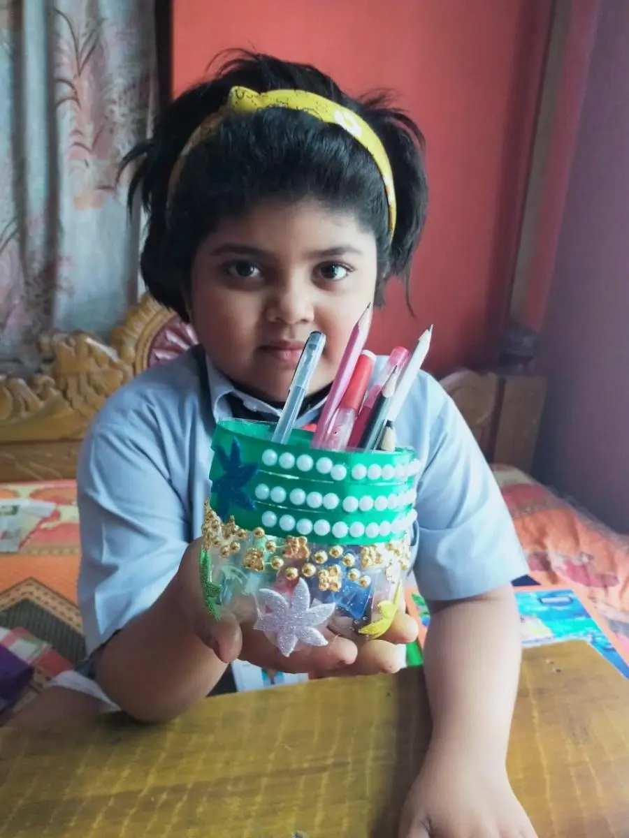 Students of Aditya Academy Secondary Barasat,(Class- Nursery) enjoyed “𝘔𝘢𝘬𝘪𝘯𝘨 𝘴𝘰𝘮𝘦𝘵𝘩𝘪𝘯𝘨 𝘰𝘶𝘵 𝘰𝘧 𝘛𝘳𝘢𝘴𝘩” activity in their online class where they all learnt about making something out of trash. They enjoyed this activity thoroughly!